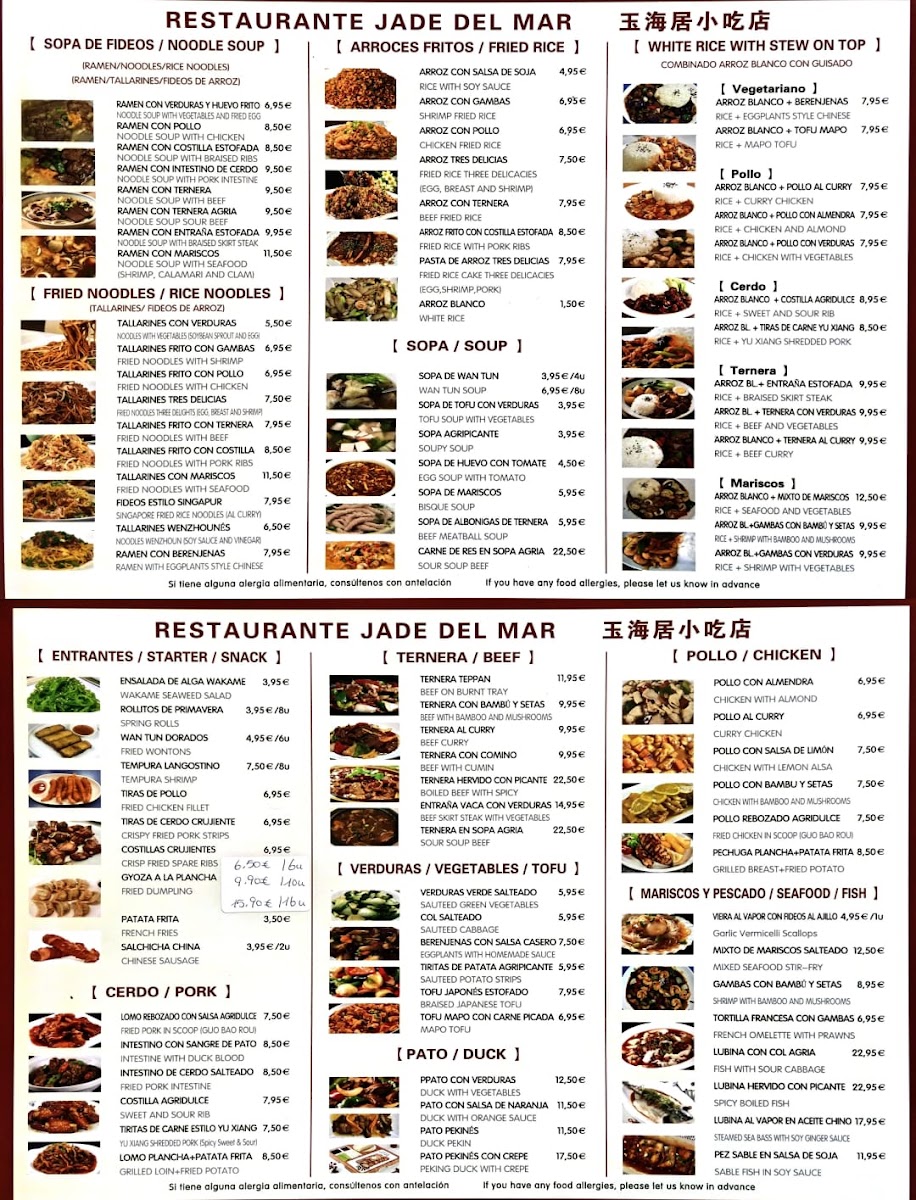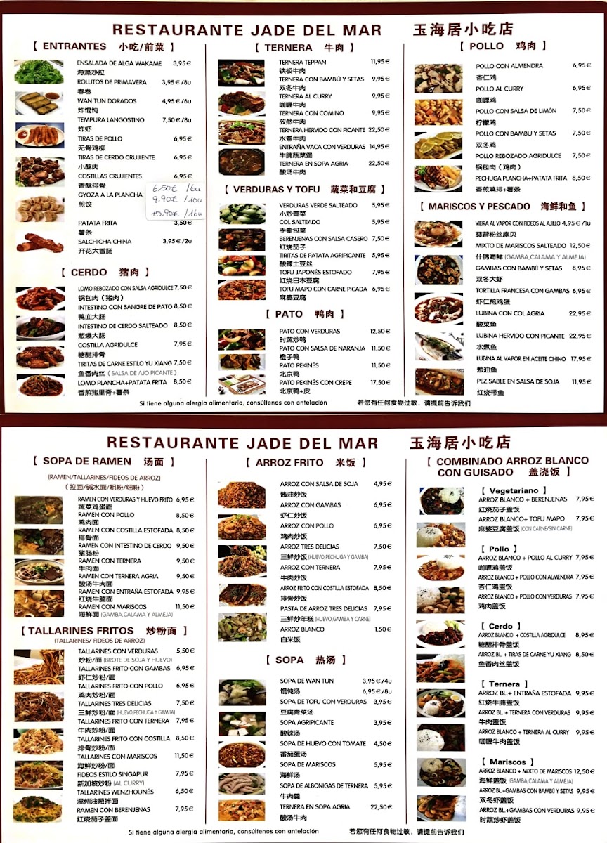 Restaurante Jade del Mar 玉海居小吃店 in Alicante offers an authentic Chinese dining experience that delights noodle lovers and seafood aficionados alike. Their menu showcases a variety of traditional dishes, with a particular focus on flavorful combinations served over steamed white rice, such as the savory Mapo Tofu, aromatic Curry Chicken, and the beloved Sweet and Sour Ribs. For chicken fans, options range from the crunchy Fried Chicken in Scoop to tender Chicken with Almonds, all prepared with fresh ingredients and balanced seasonings.
